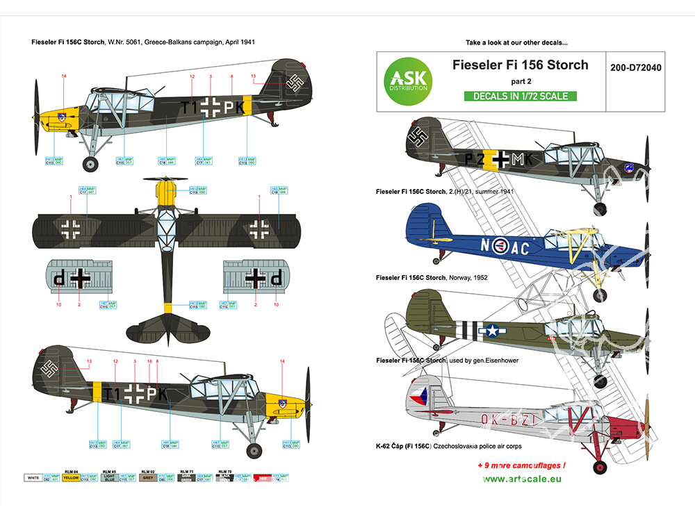 ASK Art Scale Kit Décalcomanies D72039 Fieseler Fi 156 Storch Partie 1 1/72
