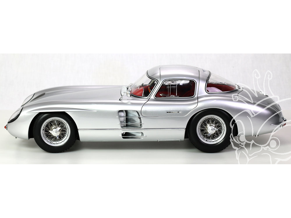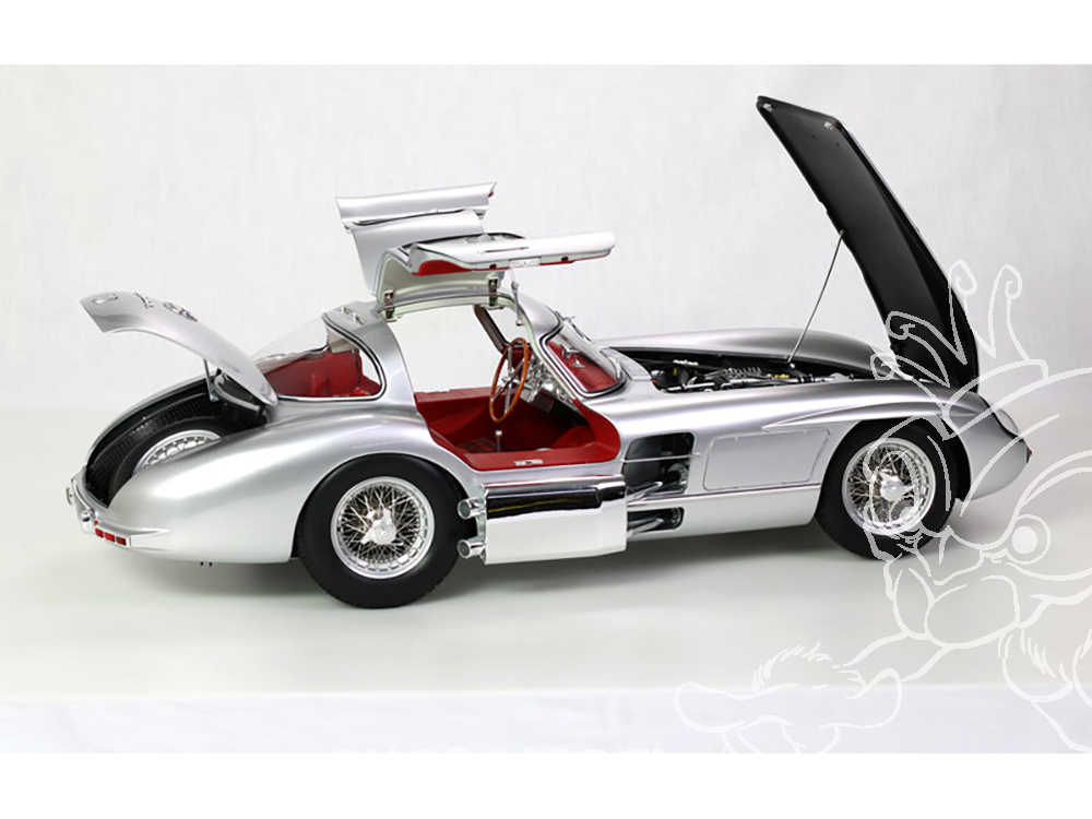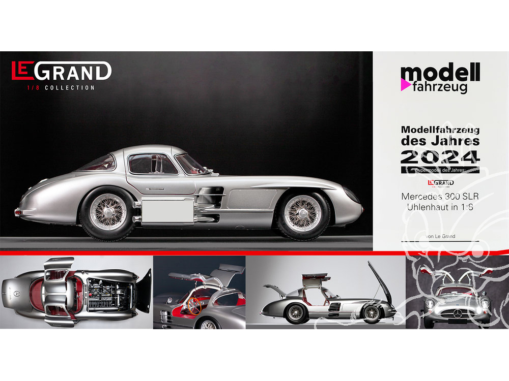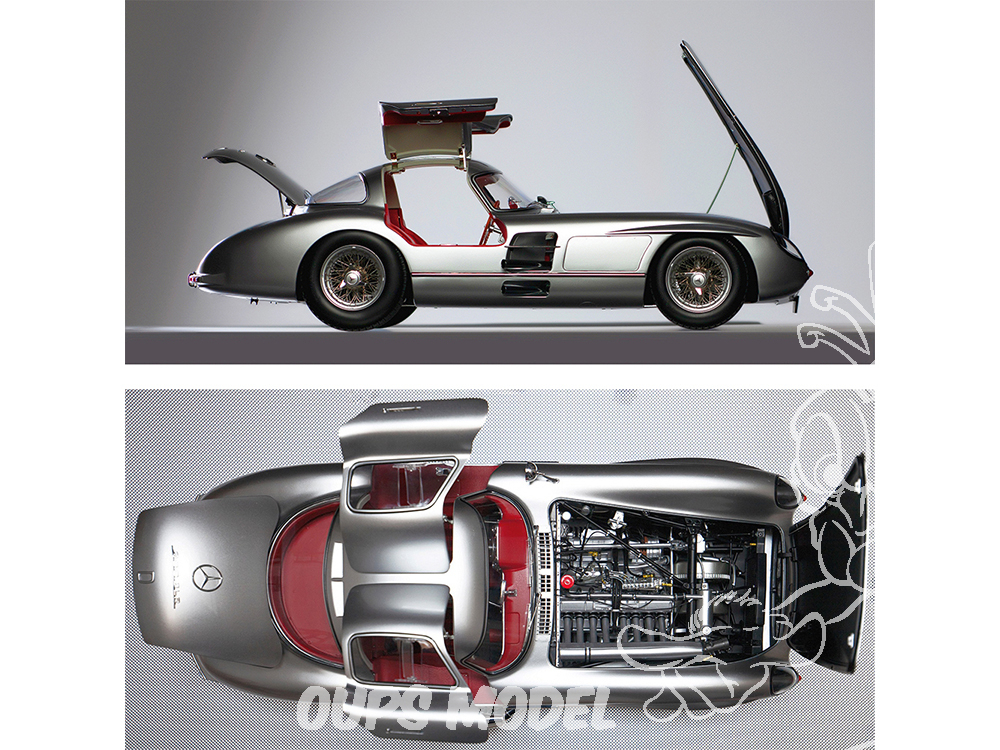 L'original : Daimler-Benz a développé cette version coupé de la voiture de sport de course 300 SLR pour la saison 1956. Il a été construit sous la supervision de Rudolf Uhlenhaut, alors chef du département des voitures de course MB. Le surnom de « Uhlenhaut Coupé » nous le rappelle aujourd’hui. Cependant, les courses n’ont jamais eu lieu car Mercedes Benz s’est retirée du sport automobile en 1955 à la fin de la saison. La MB 300 SLR est l’une des super voitures de sport les plus spectaculaires et les plus chères jamais construites et était déjà bien en avance sur son temps.