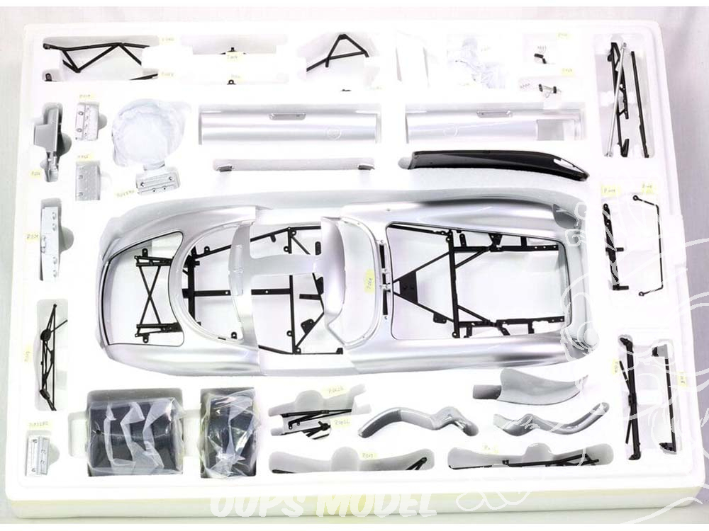 Le kit : Les kits LEGRAND 1/8 sont fabriqués à partir de matériaux de haute qualité. Le corps du modèle, qui pèse environ 7 kg, est en métal moulé sous pression et est déjà peint. Le kit se compose de plus de 900 pièces et est facile à assembler et contient des pièces fabriquées à partir de divers matériaux tels que le métal, le caoutchouc, les textiles et le plastique de haute qualité. La plupart des composants sont vissés et branchés. S'il n'y a que quelques pièces, un collage avec une colle de modélisme est recommandé. La direction et la suspension sont fonctionnelles et les portes et les volets peuvent également être ouverts de manière prototypique. Les photos du modèle montrent des échantillons manuels. La production en série peut varier dans les détails.