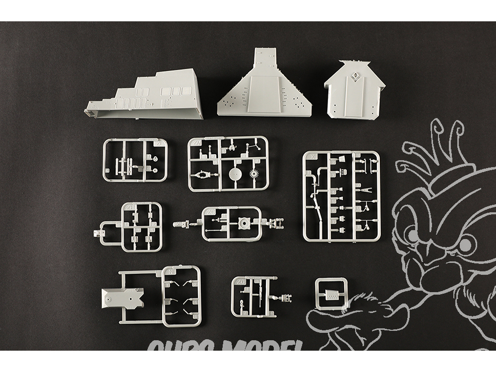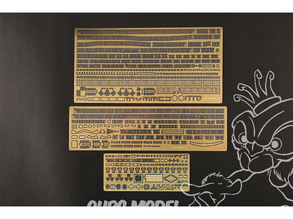 - 6 planches de photodécoupe pour les pièces de l'armement, du radar, etc.