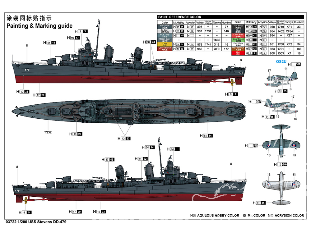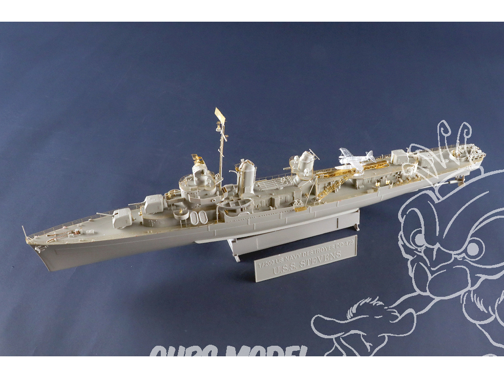 Pionnier de l'aviation à bord des destroyers de l'US Navy, le Stevens a vu son troisième poste de canon et son deuxième tube lance-torpilles démantelés. Une catapulte à jet d'eau a été ajoutée derrière la deuxième cheminée pour récupérer le matériel utilisé par les hydravions, notamment des grues. La superstructure arrière a également été rénovée.