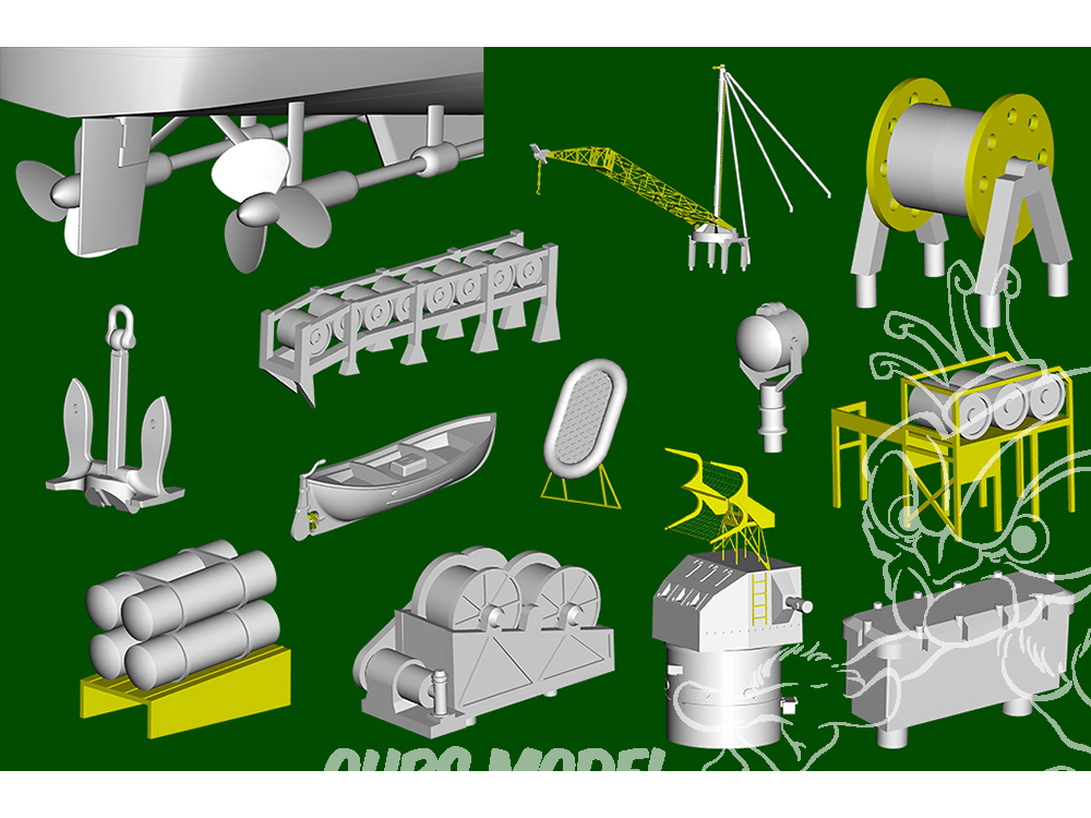 - 2 planches de photodécoupe pour les mains courantes, les échelles, les éléments du radar, etc.