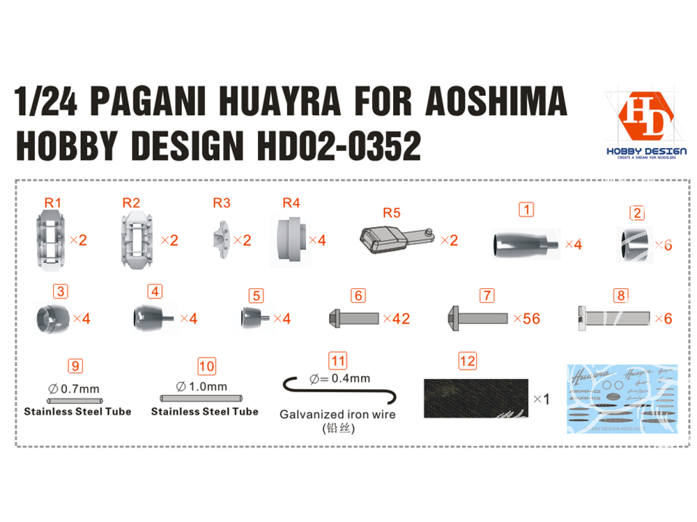 Hobby Design Amélioration 02-0352 Detail-Up Pagani Huayra pour kit aoshima 1/24