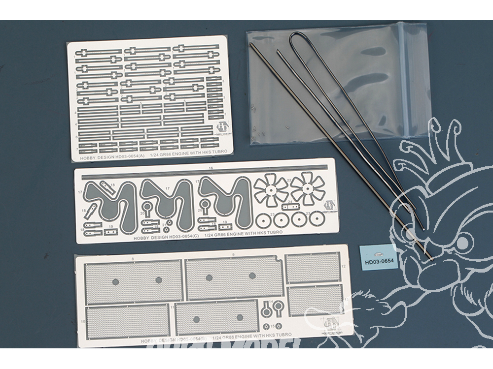 Le set inclus des pièces en résine, parties métal, logo métal et Photodécoupe.