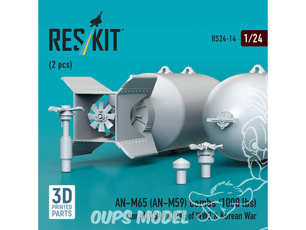 ResKit kit RS24-0014 Bombes AN-M65 AN-M59 2 pièces 1000 lbs pour tous les USAF et RAF 1/24