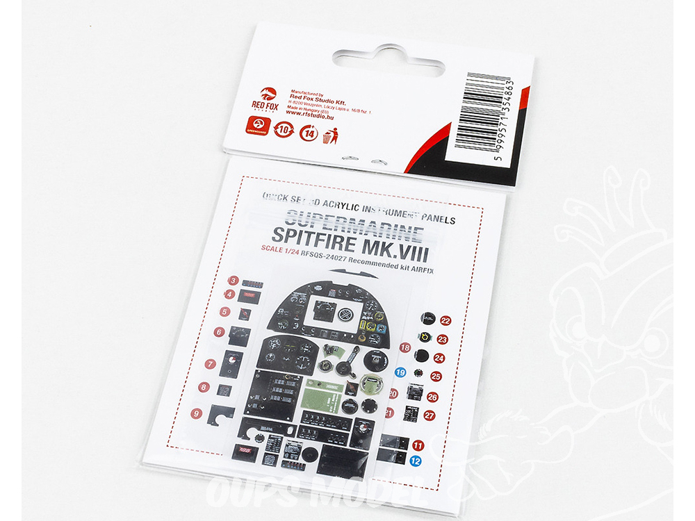 Red Fox Studio Tableaux de bord 3D avion RFQS-24027 Supermarine Spitfire Mk.VIII Airfix 1/24