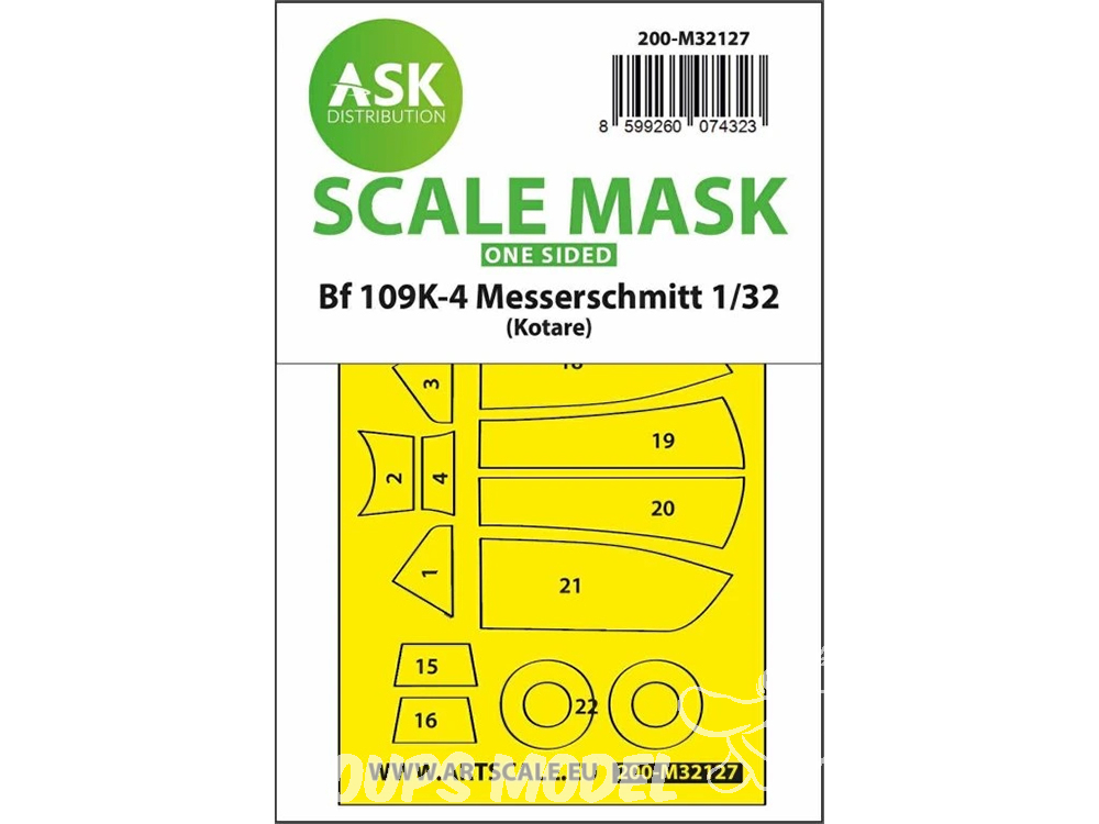 ASK Art Scale Kit Mask M32127 Messerschmitt Bf 109K-4 Kotare Recto 1/32