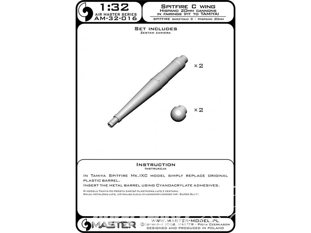 Master Model AM-32-016 Canons Spitfire Ailes C Hispano 20mm (In fairings) 1/32