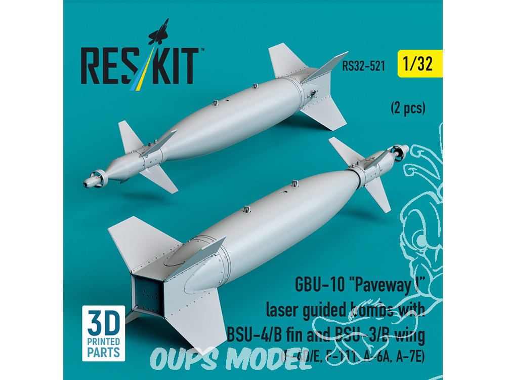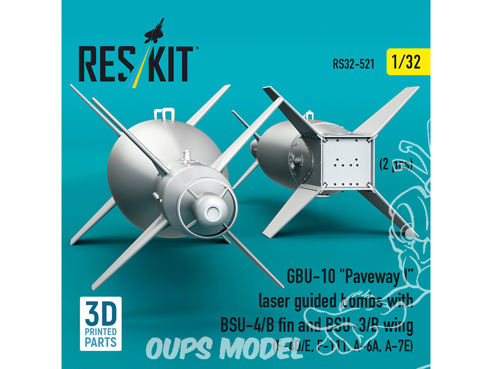 ResKit kit RS32-0521 Bombes guidées laser GBU-10 « Paveway I » avec dérive BSU-4/B et aile BSU-3/B, 2 pièces 1/32