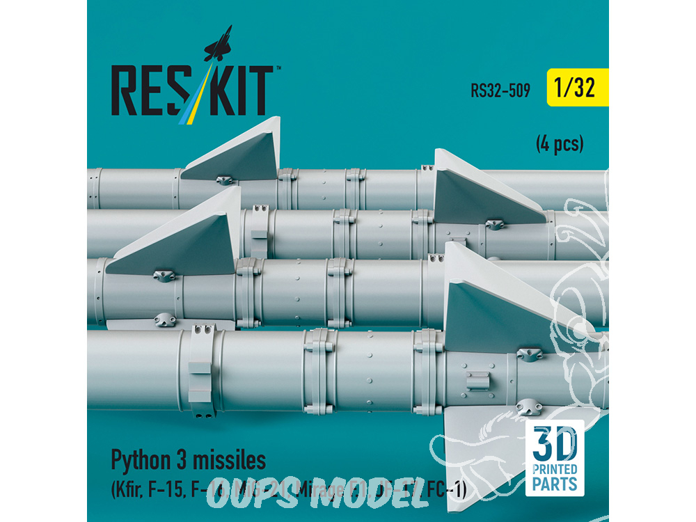 ResKit kit RS32-0509 Missiles Python 3 4 pièces imprimés en 3D 1/32