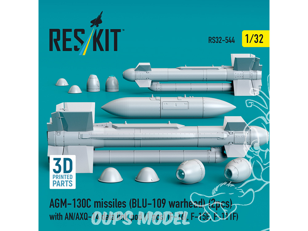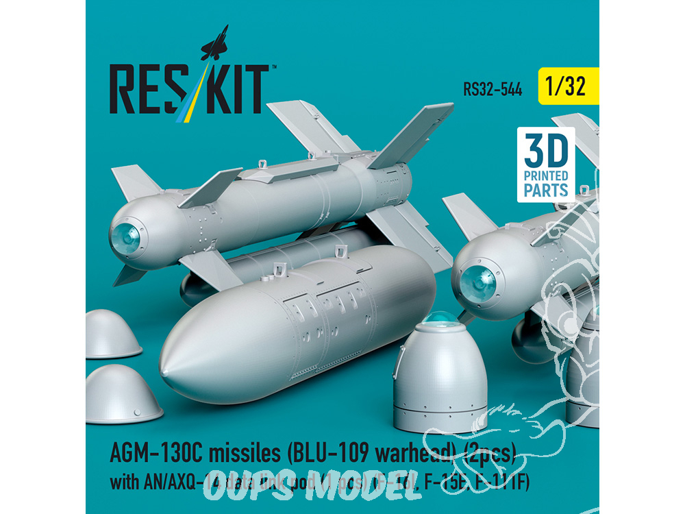 ResKit kit RS32-0544 Missiles AGM-130C 2 ogives BLU-109 avec nacelle de liaison de données AN/AXQ-14 1/32