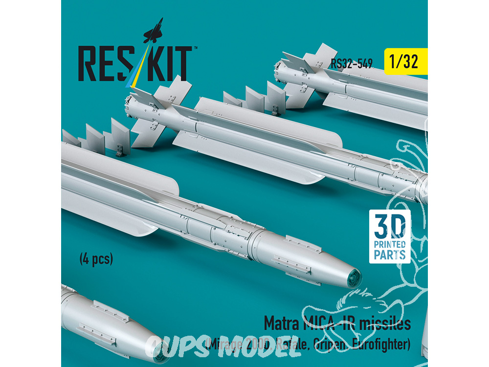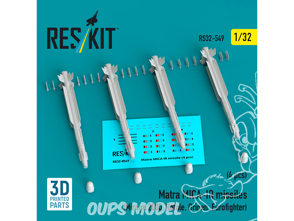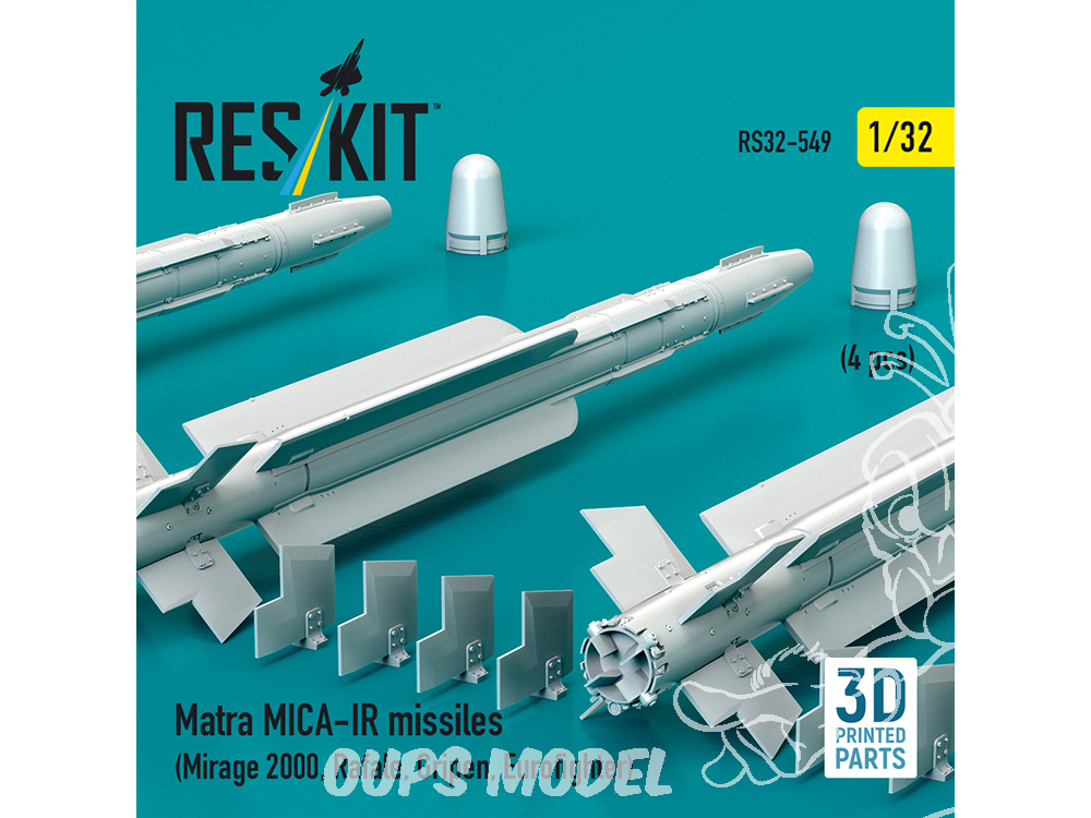 ResKit kit RS32-0549 Missiles Matra MICA-IR 4 pièces imprimés en 3D 1/32