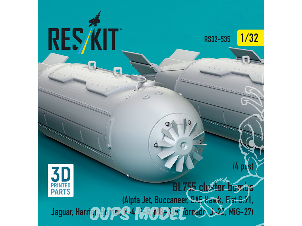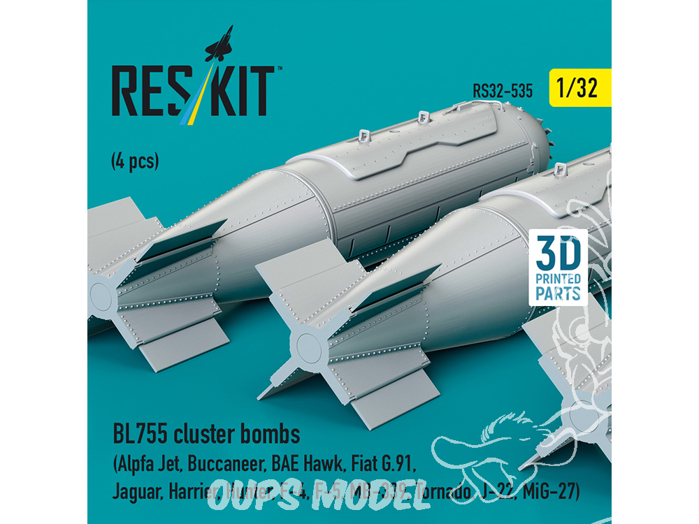 ResKit kit RS32-0535 Bombes à fragmentation BL755, 4 pièces imprimées en 3D 1/32