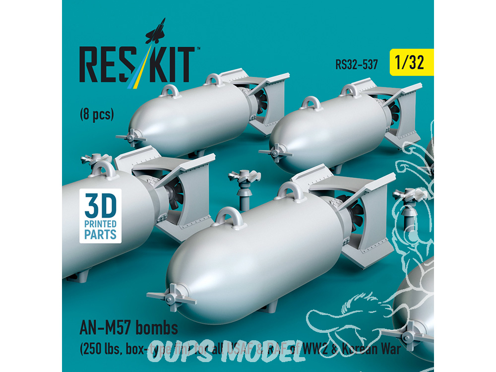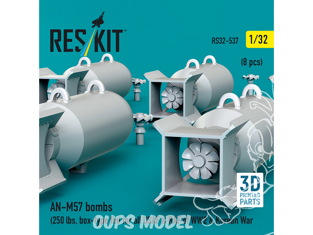 ResKit kit RS32-0537 Bombes AN-M57 de 250 lb, aileron de type boîte pour toutes les USAF et RAF 1/32