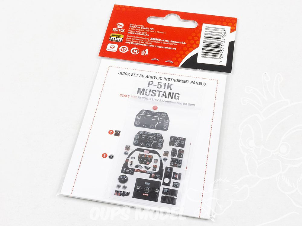 Red Fox Studio Tableaux de bord 3D avion RFQS-32167 P-51K Mustang SWS 1/32