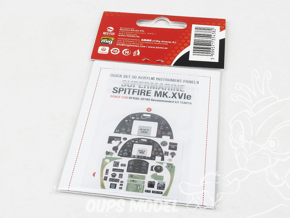 Red Fox Studio Tableaux de bord 3D avion RFQS-32190 Supermarine Spitfire Mk.XVIe Tamiya 1/32