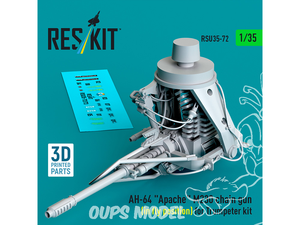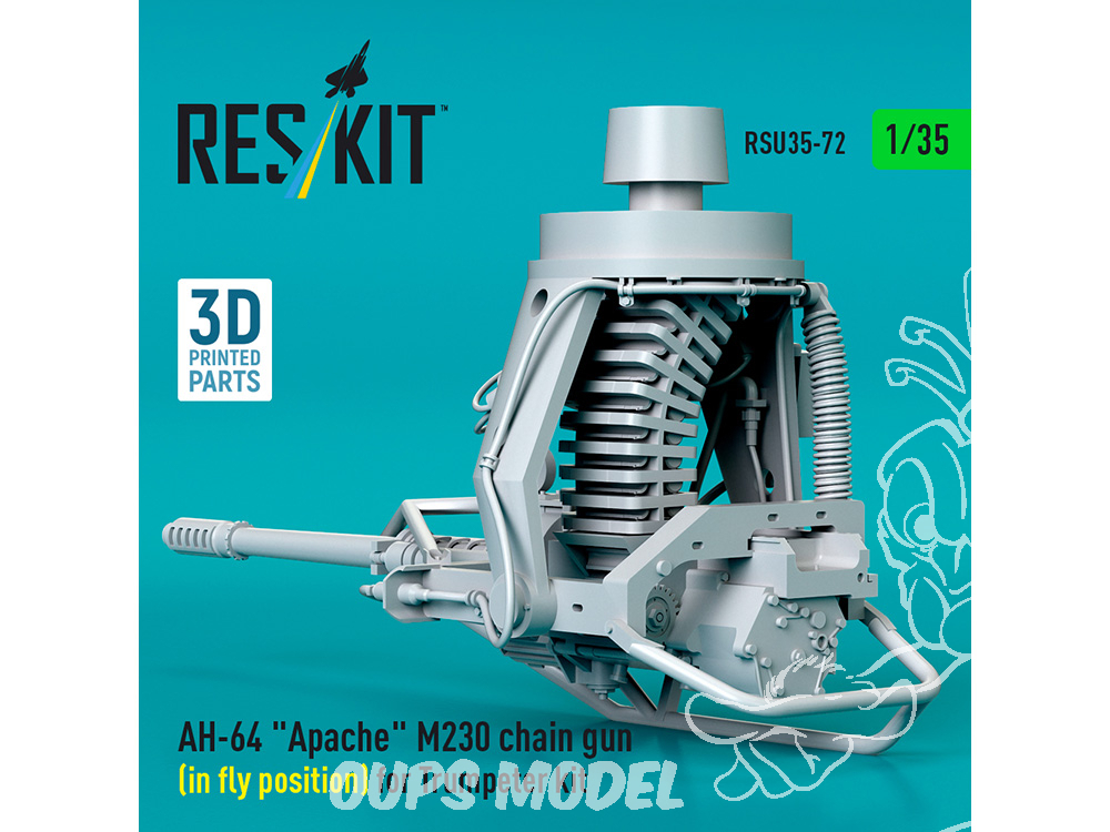 ResKit RSU35-0072 Mitrailleuse M230 pour AH-64 Apache en position de vol, imprimée en 3D kit Trumpeter 1/35