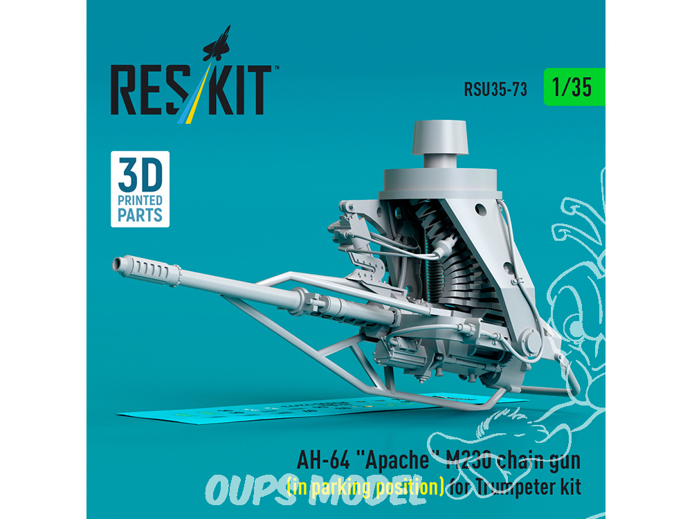ResKit RSU35-0073 Mitrailleuse M230 pour AH-64 Apache en position parking imprimée en 3D kit Trumpeter 1/35