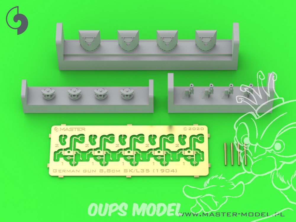 Canon allemand 8,8cm/35 (3.46in) SK L/35 - utilisé au début des années 1900 (par exemple Schlezwig-Holstein 1908) - (résine, Photodécouoe et pièces tournées) - (4 pièces).