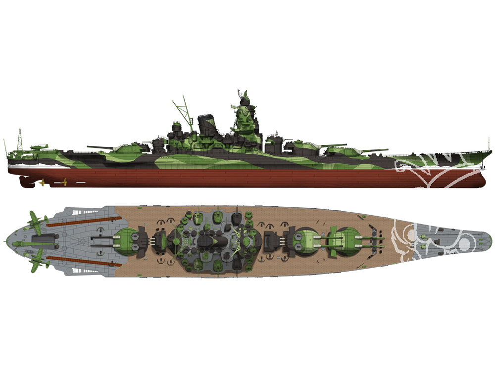 Maquette rès détaillée du cuirassé Super Yamato (KII) de la Marine impériale japonaise.