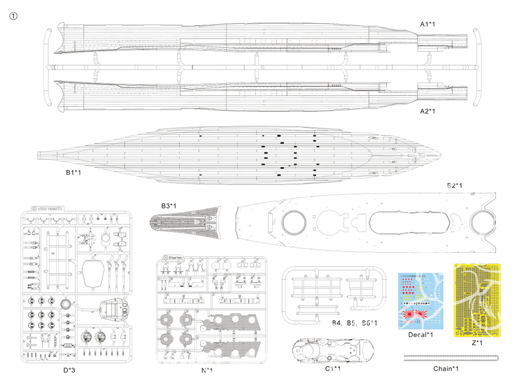 Very Fire Hobby maquette bateau 350908DLX IJN Battleship SUPER YAMATO KII Deluxe Kit 1/350