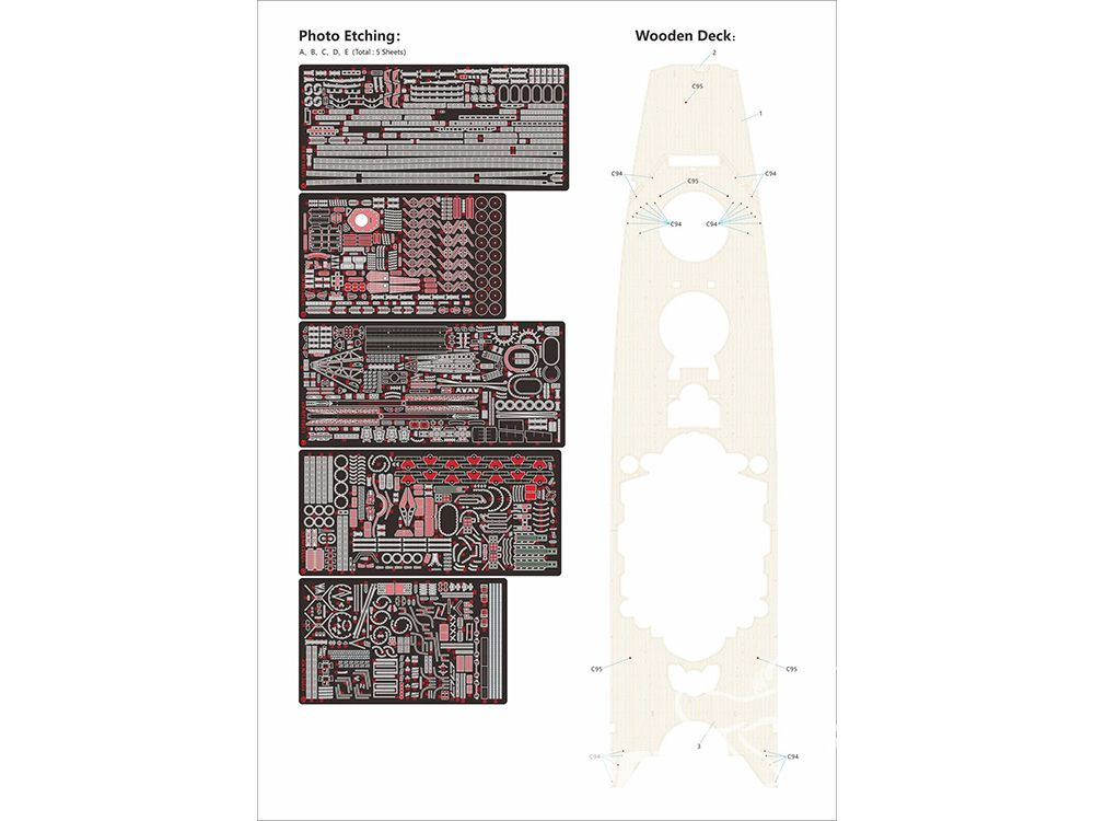 Pièces supplémentaires en laiton tourné, en résine, en photodécoupe et en bois pour le pont