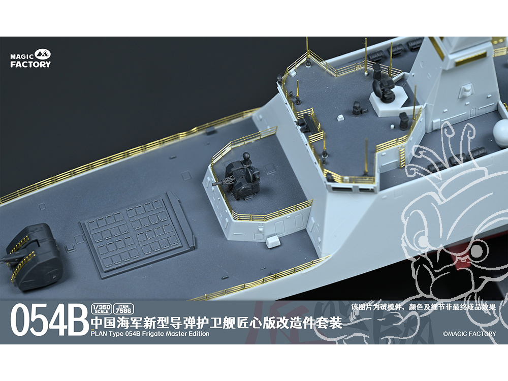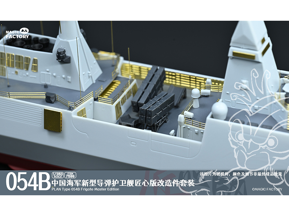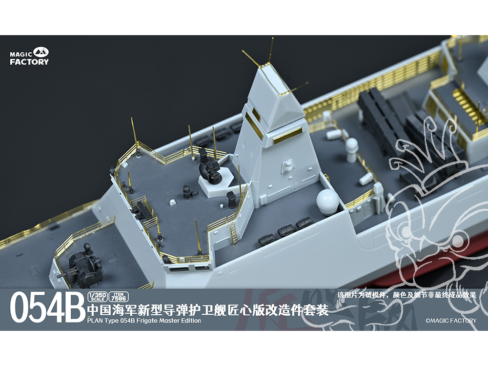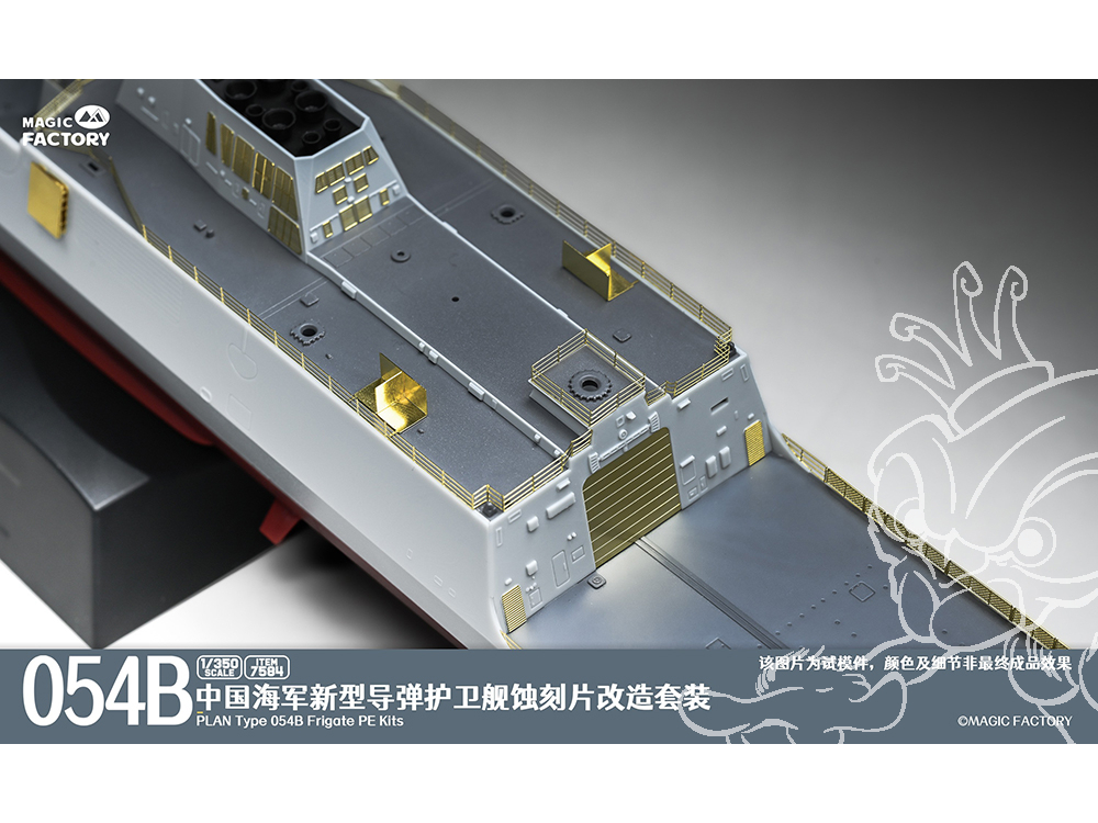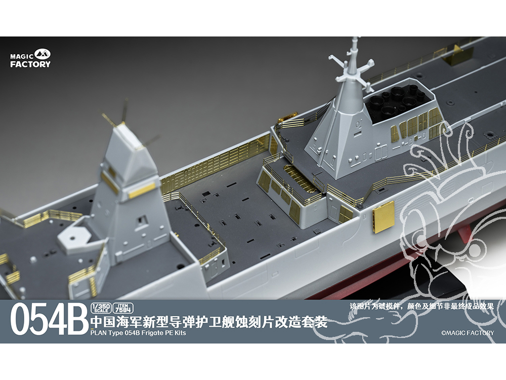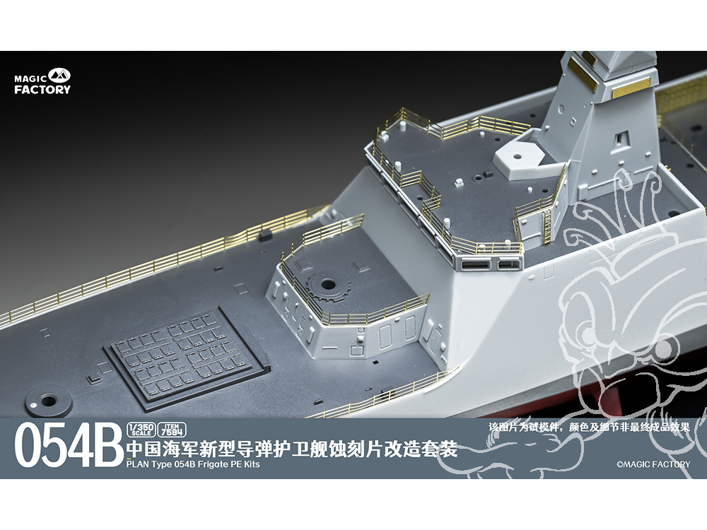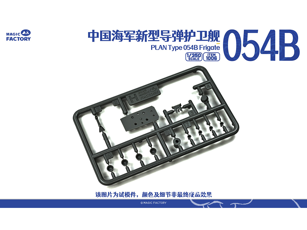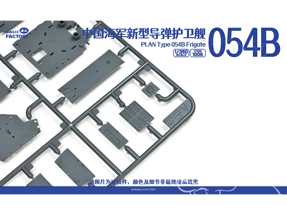 - Les principales caractéristiques et détails du Type 054B sont conservés et fidèlement restitués. La conception des grappes et des pièces est simplifiée, permettant aux maquettistes de profiter du plaisir de l’assemblage en un temps réduit.