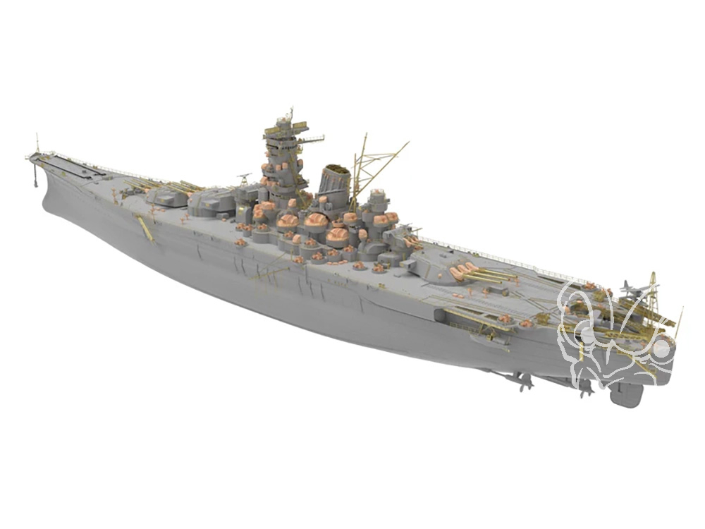 Mis en service en août 1942, le Musashi se rendit au lagon de Truk pour devenir le navire amiral de Isoroku Yamamoto. Après la mort de l'amiral, le 18 avril 1943, le Musashi revint au Japon en portant ses cendres. Le 29 mars 1944, le Musashi fut torpillé par le submersible USS Tunny, et dut retourner au Japon pour les réparations, ainsi que pour des modifications de son armement antiaérien. Les deux tourelles triples de 155 mm centrales furent débarquées pour être remplacées par six affûts doubles de 127 mm antiaériens. Mais ces nouveaux affûts ne furent jamais installés. En revanche, de nombreux affûts triples de canons antiaériens de 25 mm Type 96 furent montés en supplément (voir image).