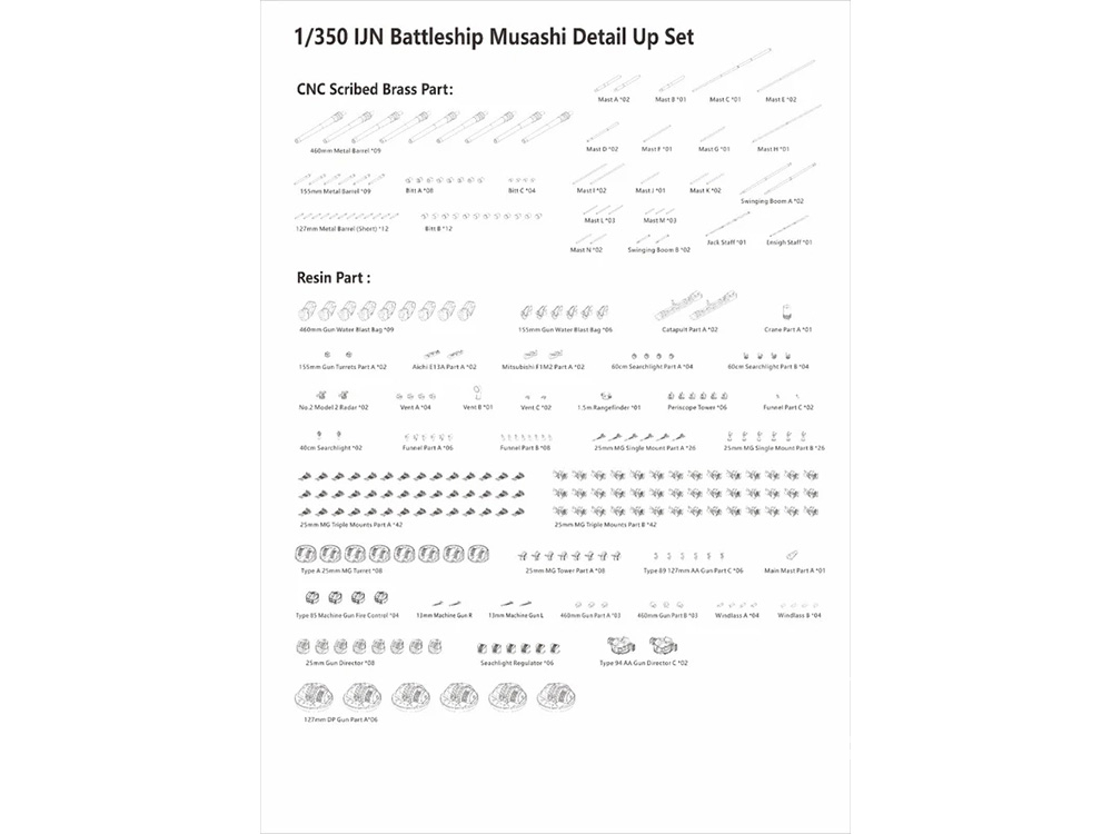 Pièces métalliques supplémentaires, pièces photo-découpées et éléments de pont en bois.