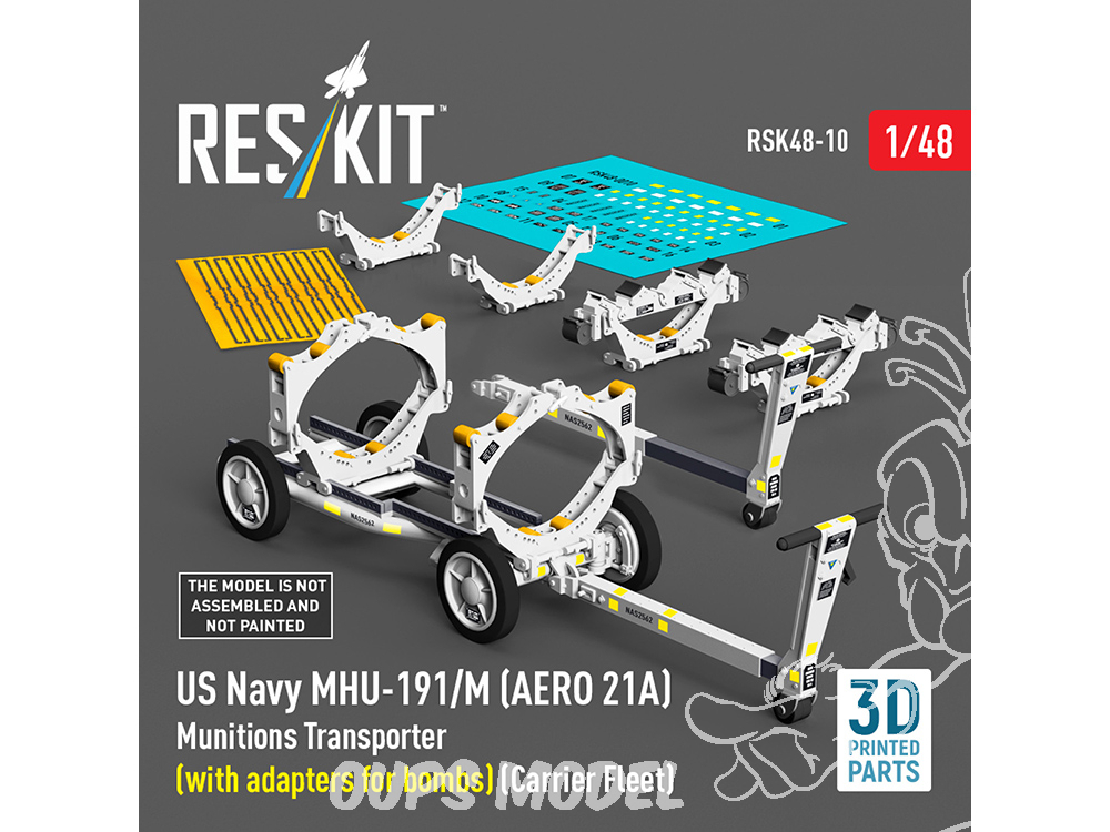 Transporteur de munitions MHU-191/M AERO 21A de l'US NAVY avec adaptateurs pour bombes (flotte de porte-avions) (kit de modèle imprimé en 3D) 1/48