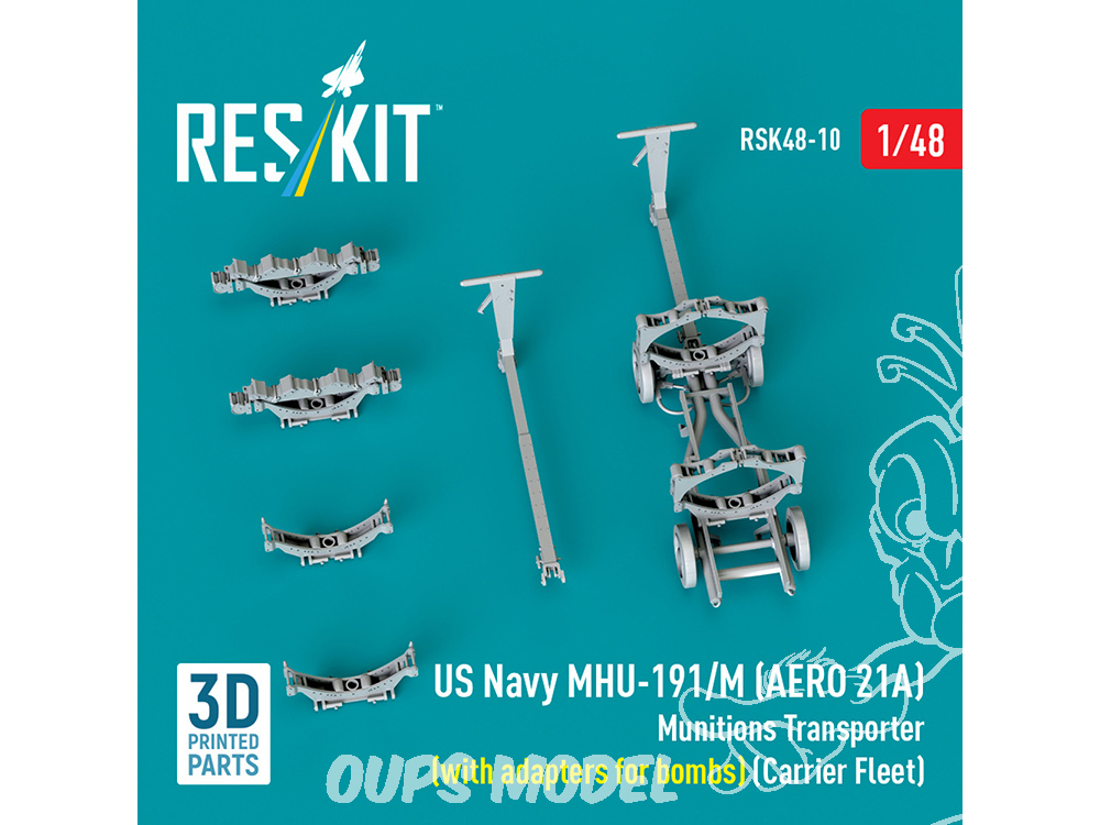 ResKit kit RSK48-0010 Transporteur de munitions MHU-191/M AERO 21A US NAVY et adaptateurs de bombes Flotte de porte-avions 1/48