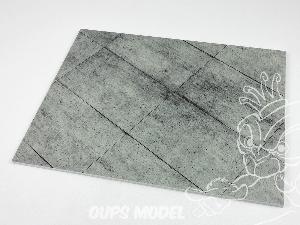 Socle de diorama imprimé sur PVC extrudé de 5 mm d'épaisseur, avec une surface colorée à effet 3D. Facile à découper et à redimensionner. Résistant aux UV et à diverses peintures et lavis. Semi-brillant, il est conseillé d'appliquer une couche de vernis mat pour un rendu plus réaliste.