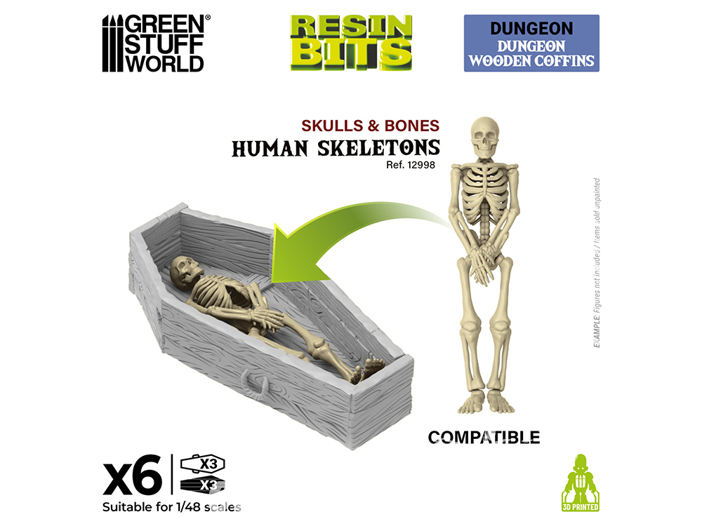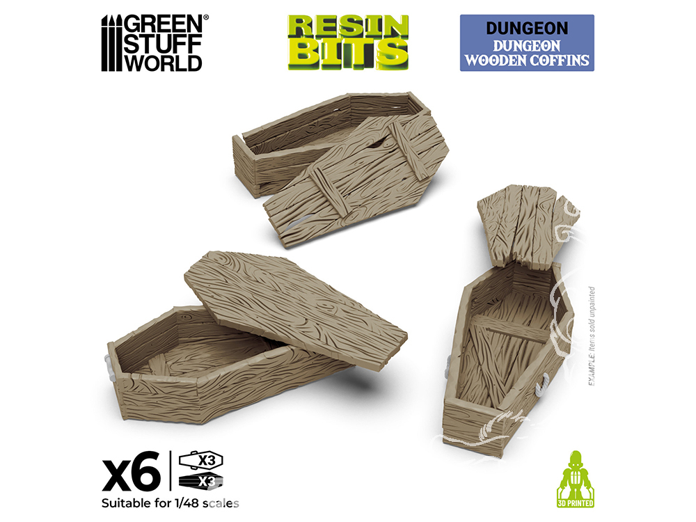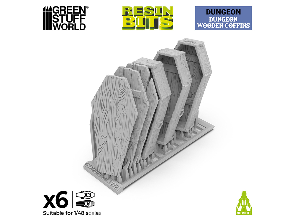 Donnez vie – ou mort – à vos donjons avec ce set exclusif de cercueils en bois, conçu pour transformer vos décors de fantasy sombre en véritables scènes narratives. Compatibles avec les socles pour figurines, dioramas et tables de jeu à l’échelle 1:48, ces Warhammer bits en résine imprimés en 3D sont parfaits pour les donjons, cryptes, catacombes ou cimetières dans des jeux comme Trench Crusade®, Warhammer Fantasy®, Warhammer: The Old World®, 9th Age, Frostgrave ou tout autre dungeon crawler classique.