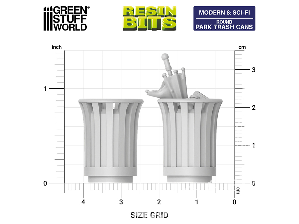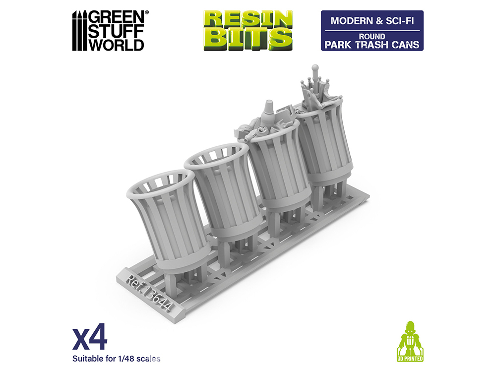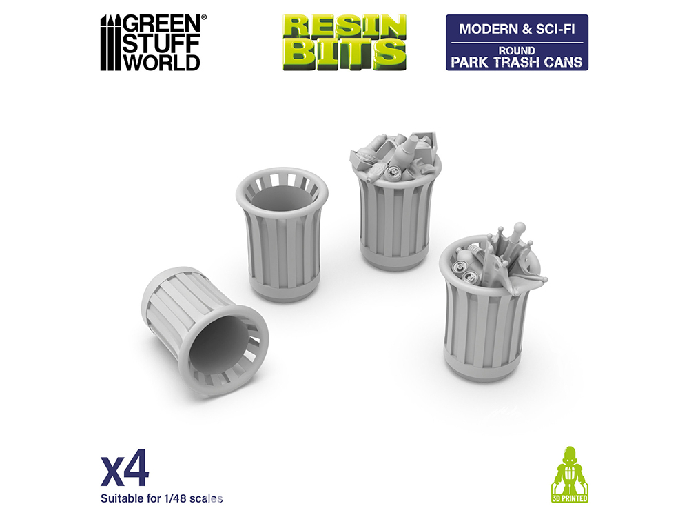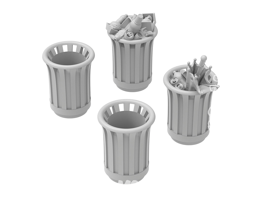 Corbeille Tulipe​ Ronde  | Poubelle de Parc Ronde pour dioramas, maquettes et jeux de société en résine 3D