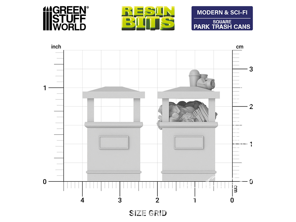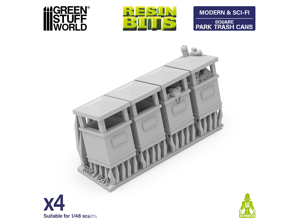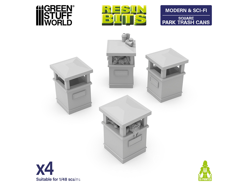 Corbeille Tulipe​ Carrée  | Poubelle de Parc Carrée pour dioramas, maquettes et jeux de société en résine 3D