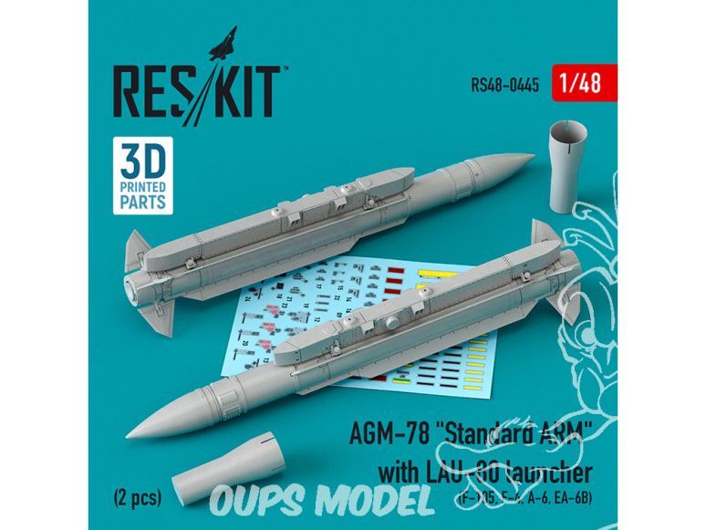 ResKit kit armement Avion RS48-0445 AGM-78 "Standard ARM" avec lanceur LAU-80 (2 pcs) 1/48