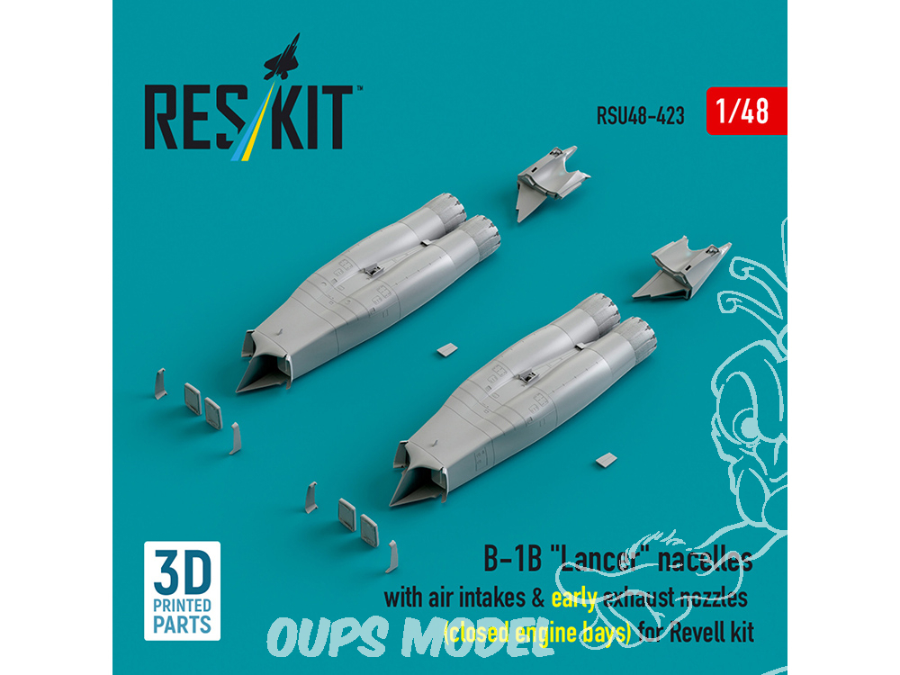ResKit avion RSU48-0423 Nacelles B-1B prises d'air et tuyères d'échappement précoces kit Revell impression 3D 1/48