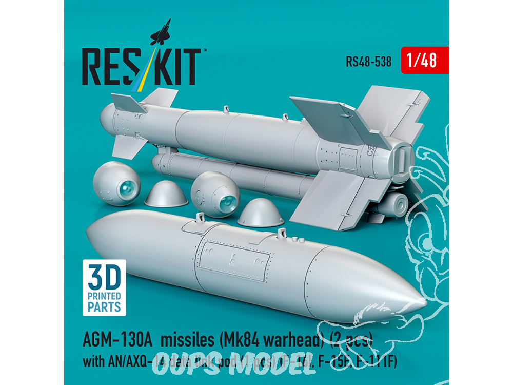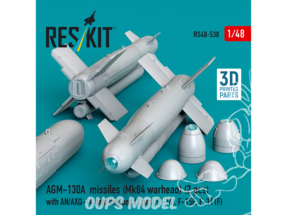 ResKit kit RS48-0538 Missiles AGM-130A 2p ogive Mk84 avec pod de liaison de données AN/AXQ-14 1p 1/48