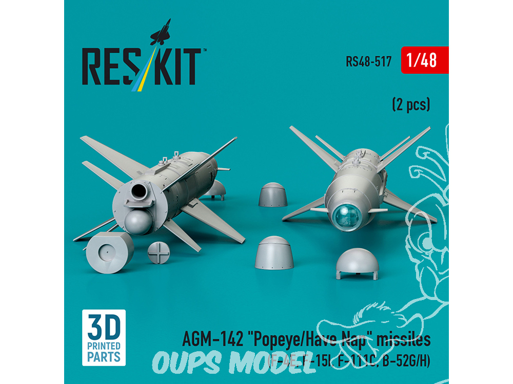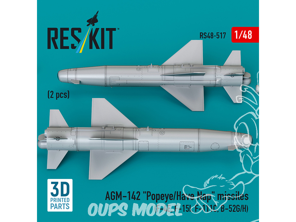 ResKit kit RS48-0517 AGM-142 "Popeye/Have Nap" missiles 2 pcs imprimé en 3D 1/48