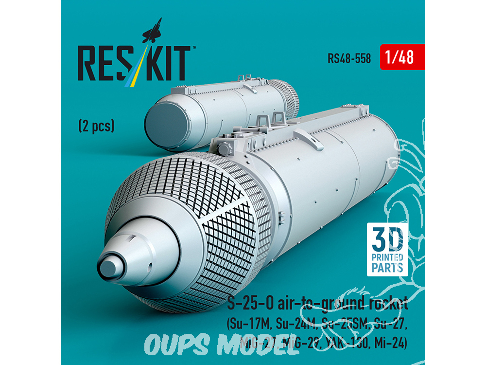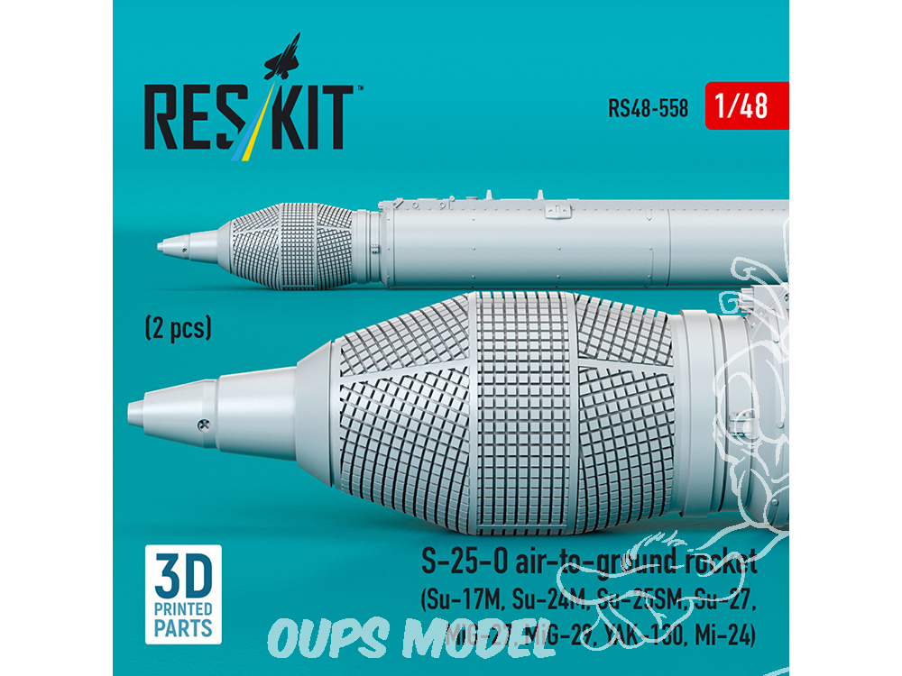 ResKit kit RS48-0558 Fusée air-sol S-25-O 2 pièces imprimées en 3D 1/48