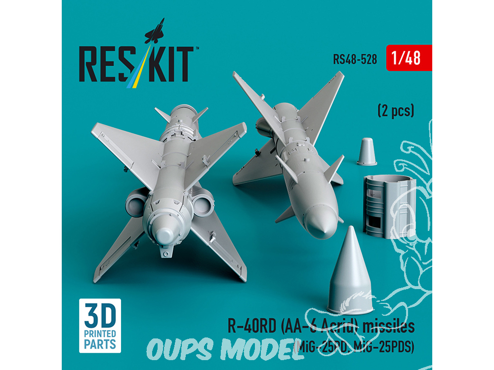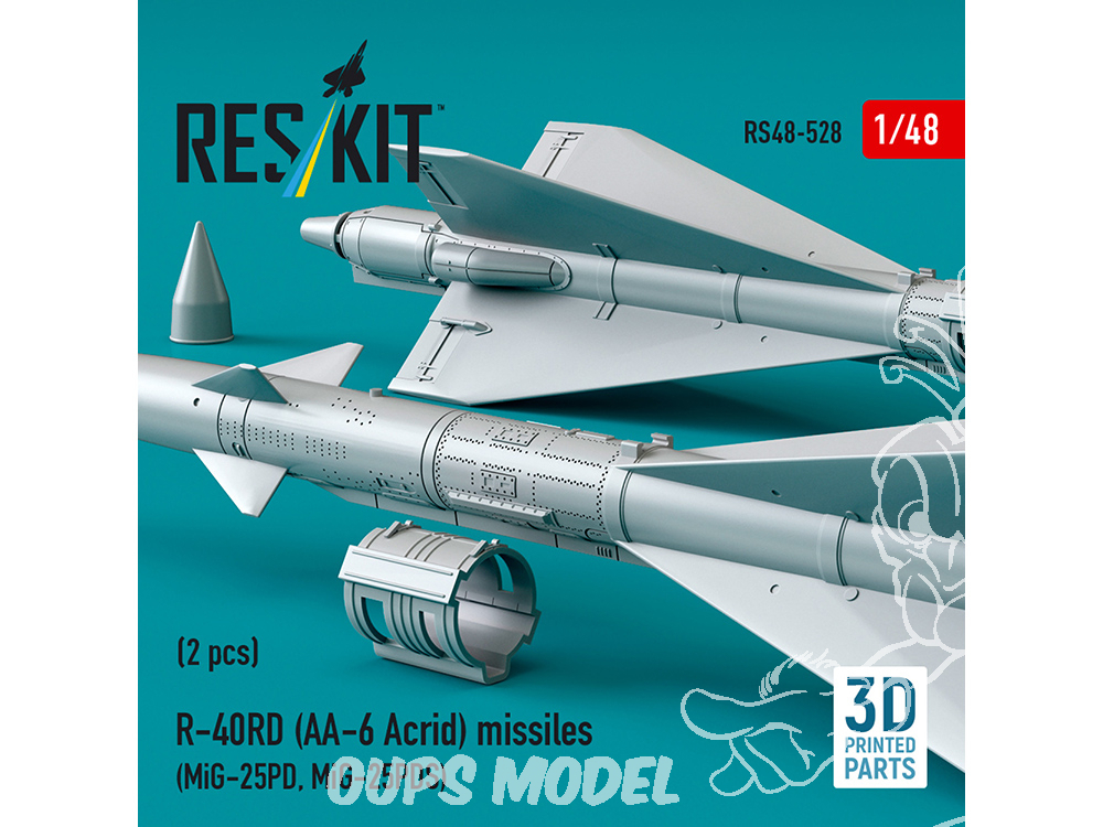 ResKit kit RS48-0528 Missiles R-40RD AA-6 « Acrid » 2 pièces imprimés en 3D 1/48