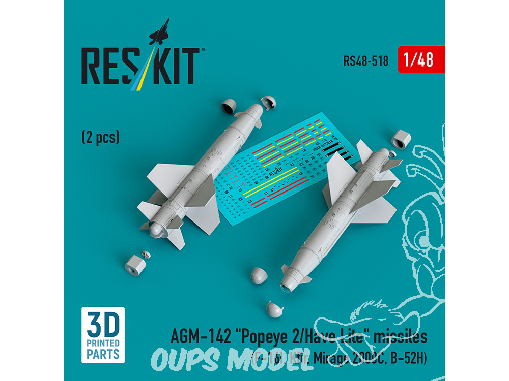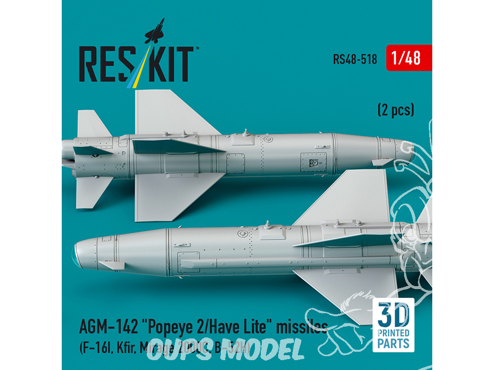 ResKit kit RS48-0518 Missiles AGM-142 « Popeye 2/Have Lite » 2 pièces imprimés en 3D 1/48