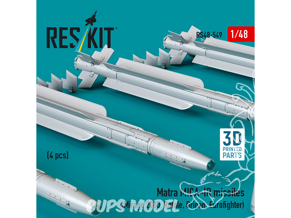 ResKit kit RS48-0549 Missiles Matra MICA-IR 4 pièces imprimés en 3D 1/48