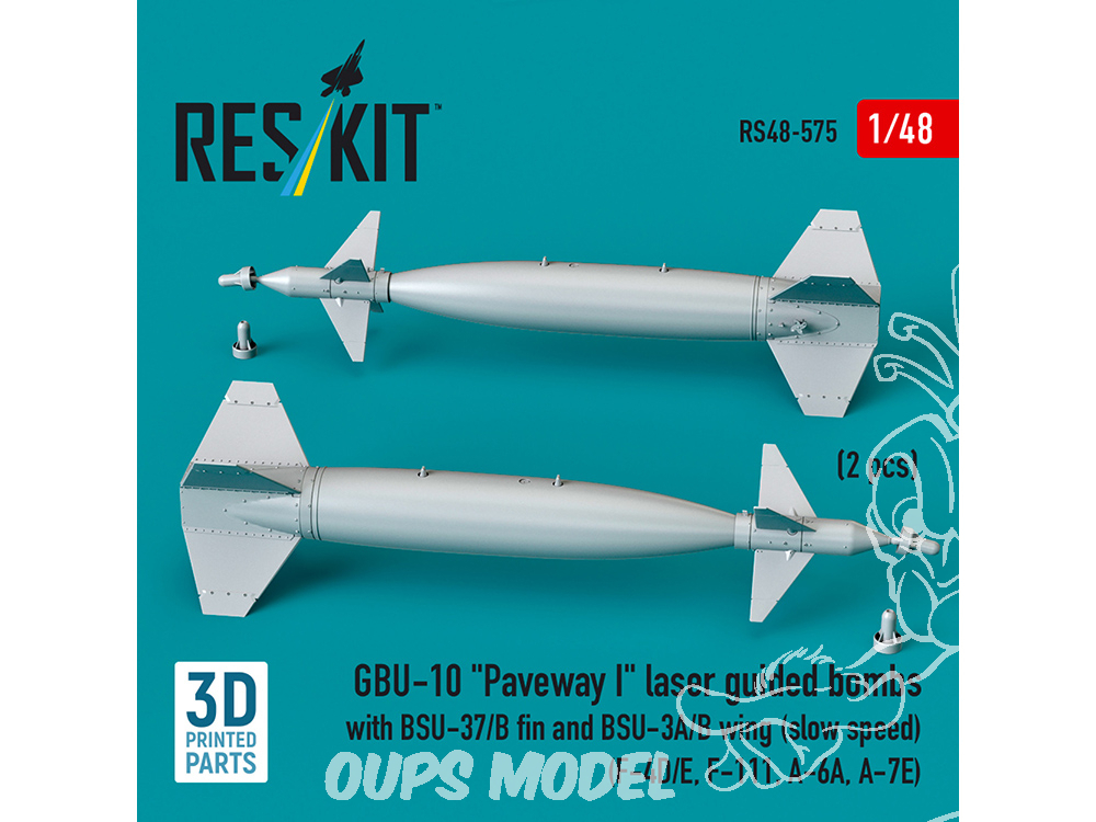 ResKit kit RS48-0575 Bombes guidées laser GBU-10 « Paveway I » avec dérive BSU-37/B et aile BSU-3A/B vitesse lente 1/48