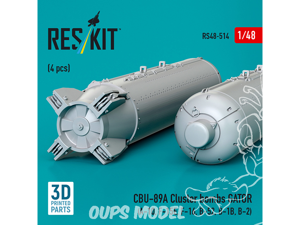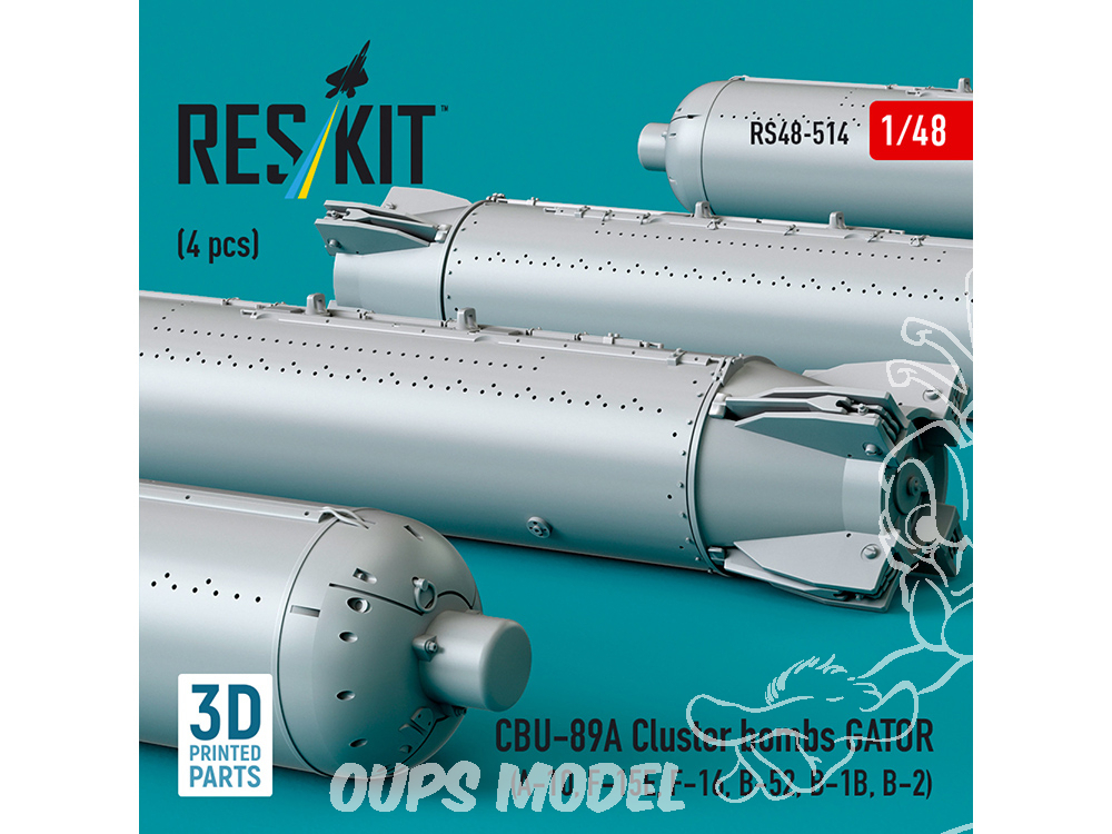 ResKit kit RS48-0514 Bombes à fragmentation CBU-89A GATOR 4 pièces imprimées en 3D 1/48