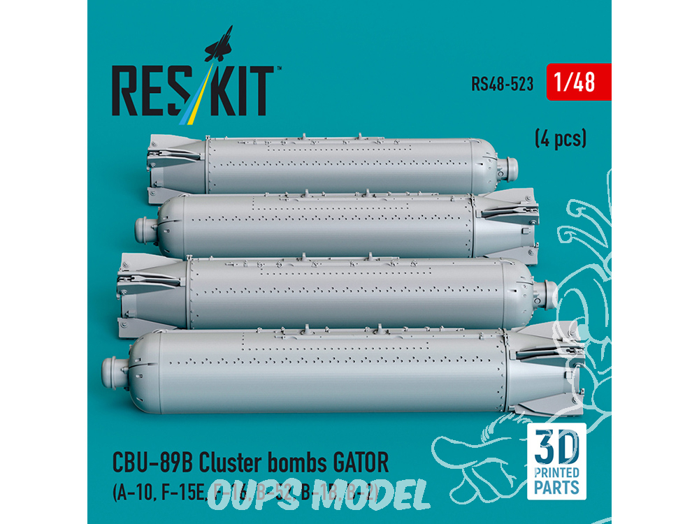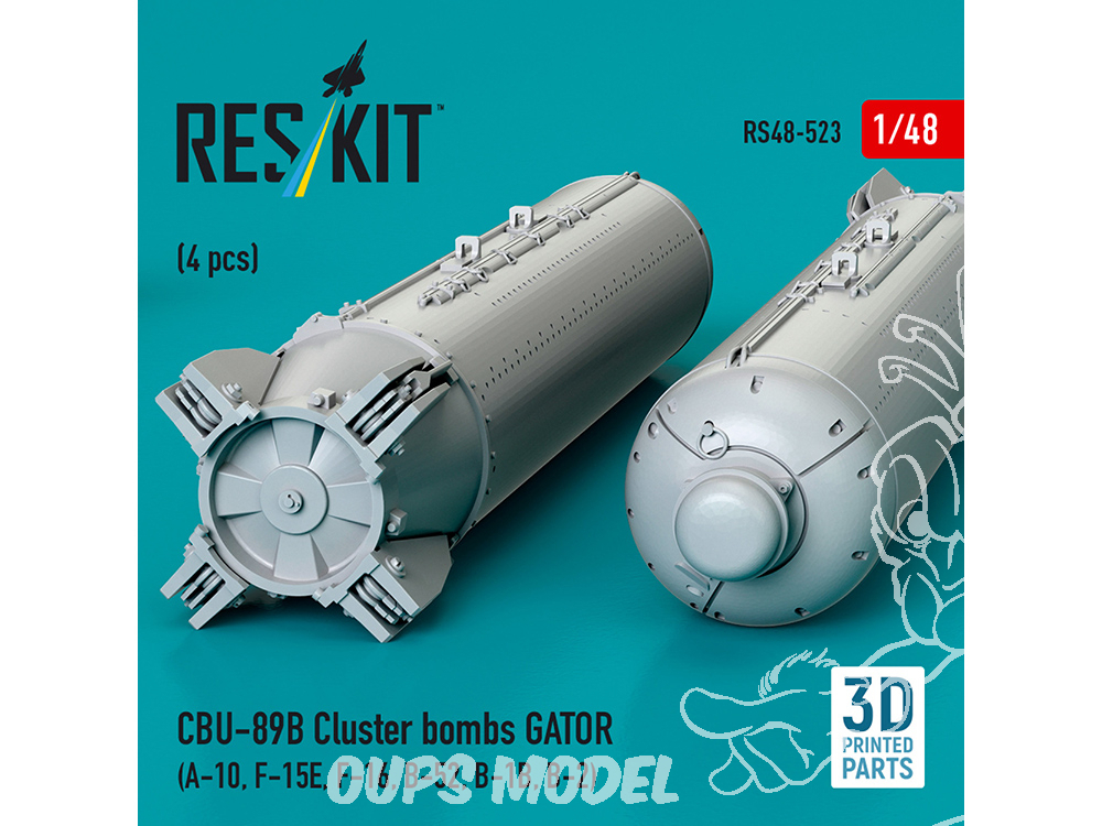 ResKit kit RS48-0523 Bombes à fragmentation CBU-89B GATOR 4 pièces imprimées en 3D 1/48