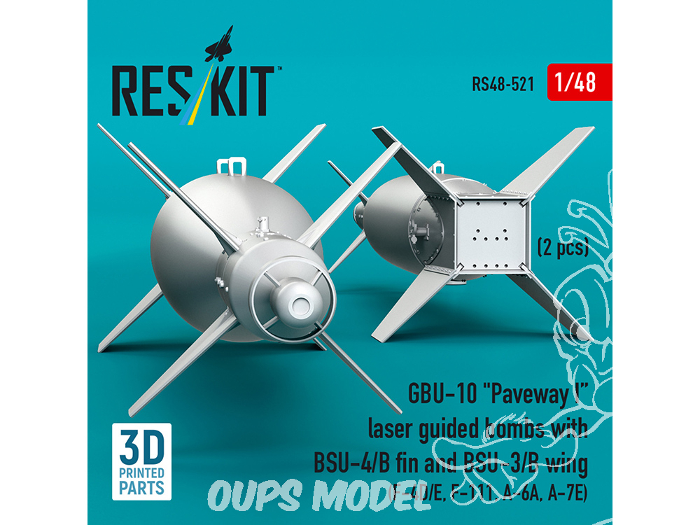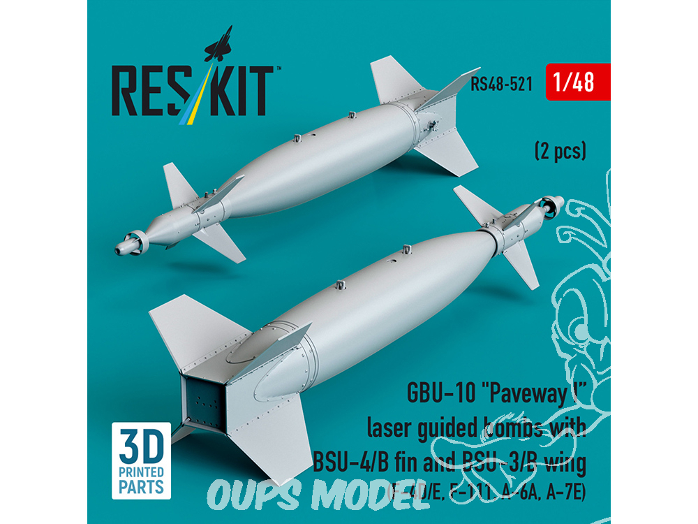 ResKit kit RS48-0521 Bombes guidées laser GBU-10 « Paveway I » avec dérive BSU-4/B et aile BSU-3/B, 2 pièces 1/48