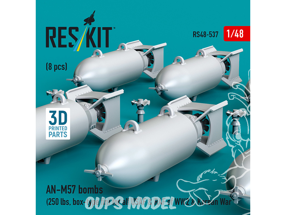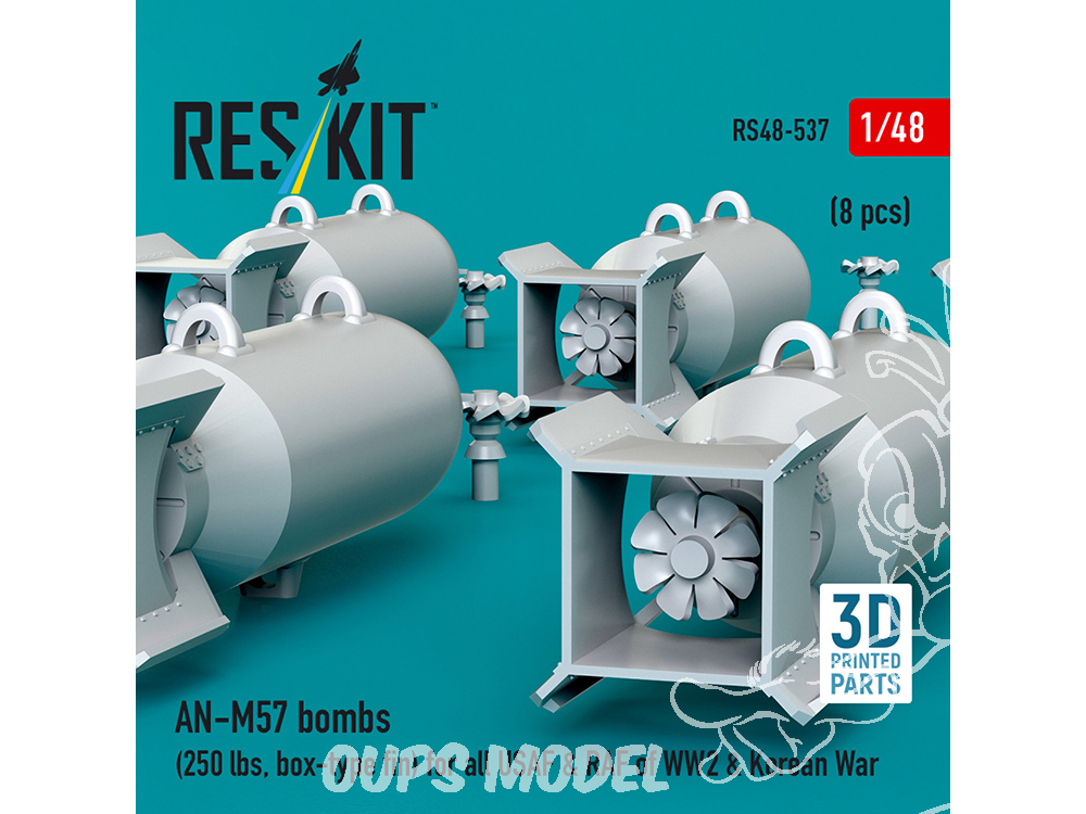 ResKit kit RS48-0537 Bombes AN-M57 de 250 lb, aileron de type boîte pour toutes les USAF et RAF 1/48