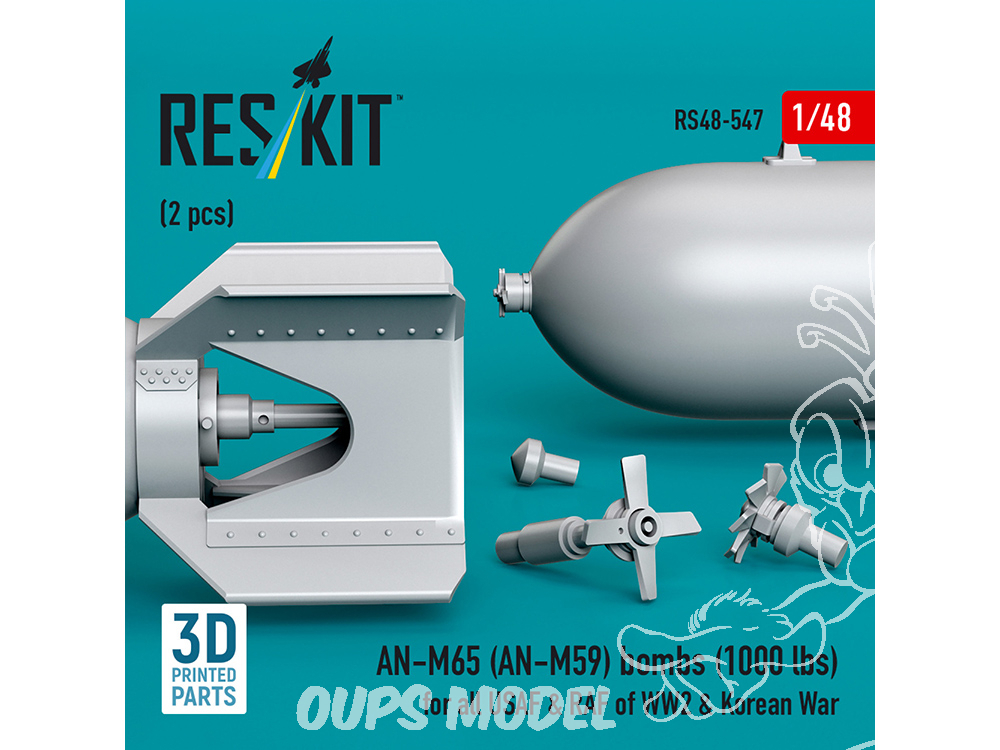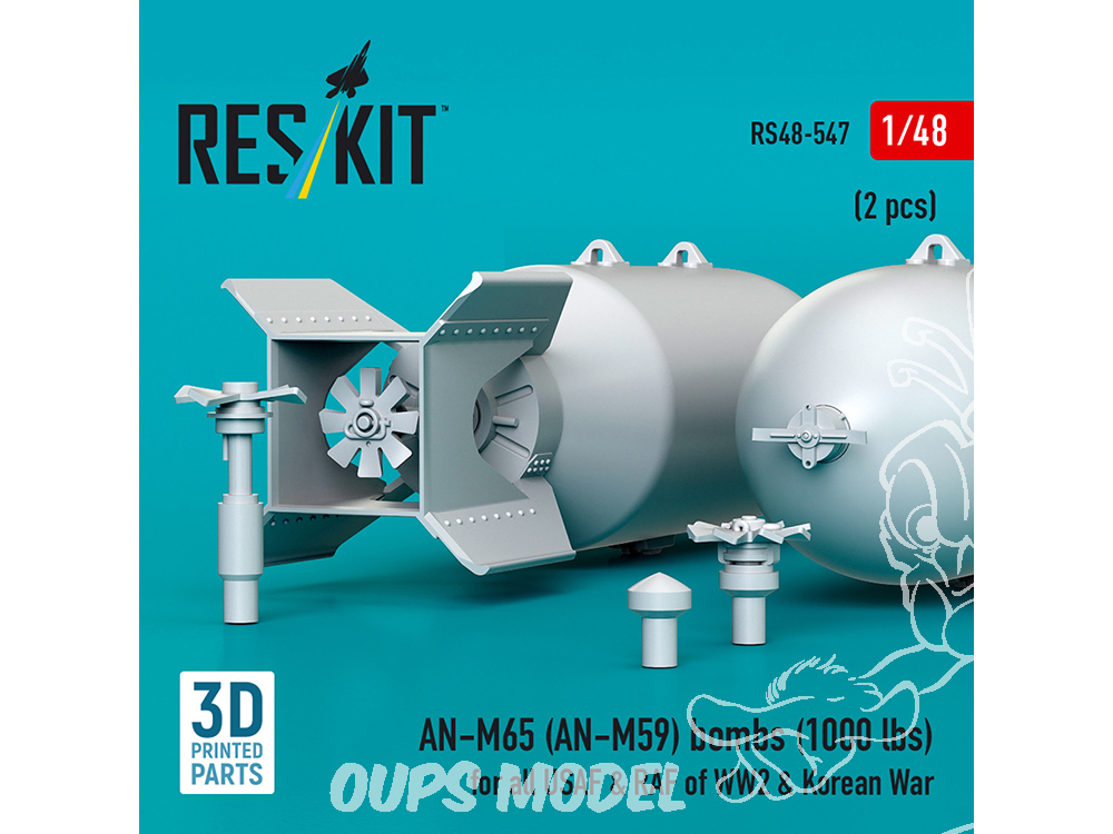 ResKit kit RS48-0547 Bombes AN-M65 AN-M59 2 pièces 1000 lbs pour tous les USAF et RAF 1/48