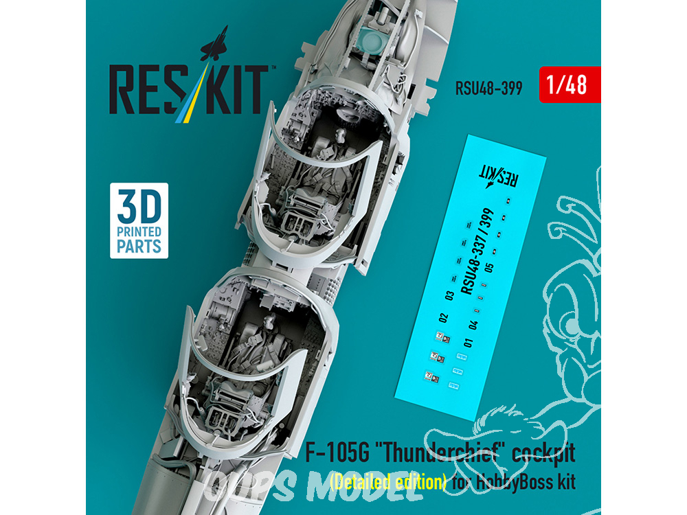ResKit avion RSU48-0399 Cockpit du F-105G « Thunderchief » : édition détaillée pour kit HobbyBoss imprimé en 3D 1/48